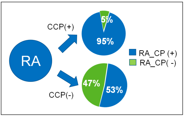 類風濕性關(guān)節(jié)炎是一種以侵蝕性關(guān)節(jié)炎為主要臨床表現(xiàn)的慢性進行性自身免疫病,高發(fā)年齡為30歲~50歲。目前全球發(fā)病率為0.5%~1%,中國發(fā)病率為0.42%,總患病人數(shù)約500萬,致殘率高并且反復發(fā)作。但是,現(xiàn)有的RA診斷技術(shù)遠遠不能滿足臨床的診療需求,國際診療指南推薦的抗環(huán)瓜氨酸肽抗體(CCP)雖有良好的特異性,但有約30-40%的RA患者不能被檢出,真正解決RA臨床診斷痛點的關(guān)鍵是突破性的高靈敏檢測指標!
