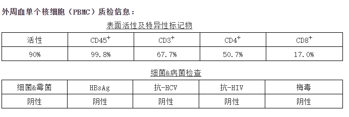 PBMC取自血液制品,按照標(biāo)準(zhǔn)操作流程分離制備,保證不同批次間細(xì)胞質(zhì)量的穩(wěn)定性。建立了嚴(yán)格的細(xì)胞鑒定流程,所提供的原代細(xì)胞均經(jīng)過細(xì)胞類型特異性標(biāo)記物、細(xì)胞形態(tài)學(xué)檢測,保證細(xì)胞純度>95%,細(xì)胞活性>90%;每個(gè)批次的產(chǎn)品均經(jīng)過微生物、HIV、HBV、HCV、梅毒等檢測。