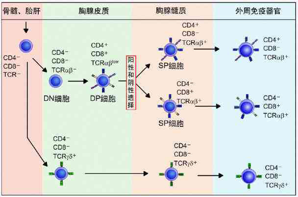 圖2 T細(xì)胞分化發(fā)育過程(圖來源網(wǎng)絡(luò))