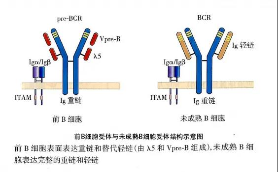 B細(xì)胞在骨髓中的分化發(fā)育需經(jīng)歷祖B細(xì)胞、前B細(xì)胞、未成熟B細(xì)胞、成熟B細(xì)胞等幾個(gè)階段。